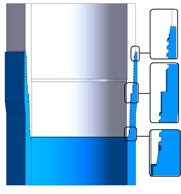 TP-G2 HP特殊扣是我公司設(shè)計(jì)的新一代高性能特殊扣產(chǎn)品。其整體密封式結(jié)構(gòu),能保證接頭強(qiáng)度在拉伸、壓縮、內(nèi)壓、外壓載荷下達(dá)到管體強(qiáng)度的100%,現(xiàn)已完成ISO 13679 四級實(shí)驗(yàn)。 ![]() | |